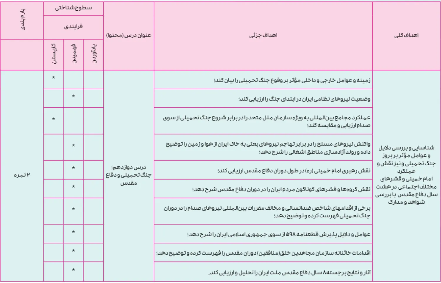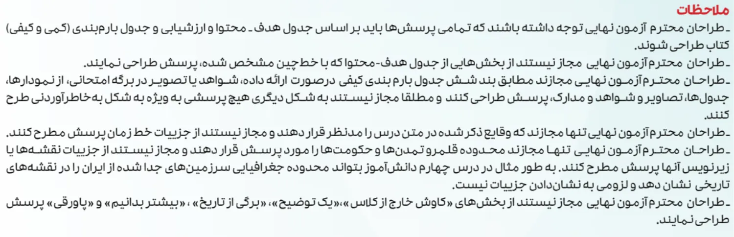 بارم بندی تاریخ دوازدهم انسانی شامل بودجه بندی و اهمیت فصل های مختلف کتاب تاریخ دوازدهم انسانی می باشد. در ادامه می توانید بارم بندی امتحان نهایی تاریخ دوازدهم انسانی را برای سال تحصیلی ۱۴۰۳-۱۴۰۲ مشاهده کنید.