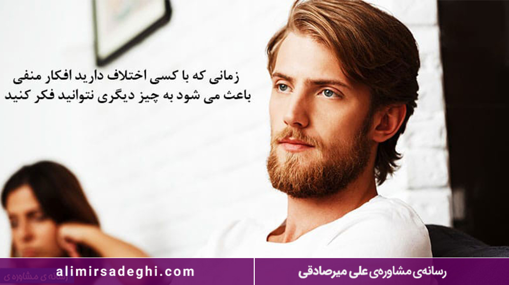 به عنوان مثال، زمانی که با کسی اختلاف شدید دارید، عصبانیت و عواطف منفی شما ممکن است شما را به نقطهای برساند که در آن نمیتوانید به چیز دیگری فکر کنید. یا زمانی که در مورد هر کاری که باید انجام دهید، دچار استرس میشوید، ممکن است به سختی بتوانید کاری را آغاز کنید زیرا از این که لیست کارهای قبلیتان چقدر طول کشیده است فلج شدهاید. یا اگر در مورد اینکه ورزش نمیکنید و یا غذای سالمی نمیخورید احساس بدی در مورد خودتان دارید، تنها چیزی که به آن فکر میکنید این است که چقدر کم اراده و تنبل هستید و چطور هیچ انگیزهای ندارید.