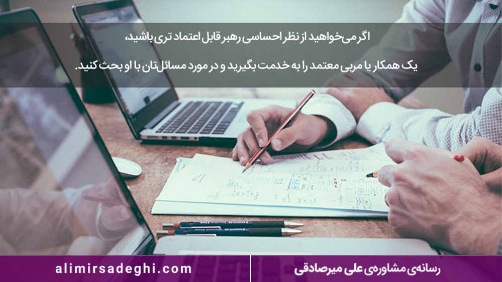 البته، ما تشخیص می‌دهیم که رهبران نیز انسان هستند! اگر می‌خواهید از نظر احساسی رهبر قابل اعتماد تری باشید، یک همکار یا مربی معتمد را به خدمت بگیرید و در مورد مسائل‌تان با او بحث کنید.