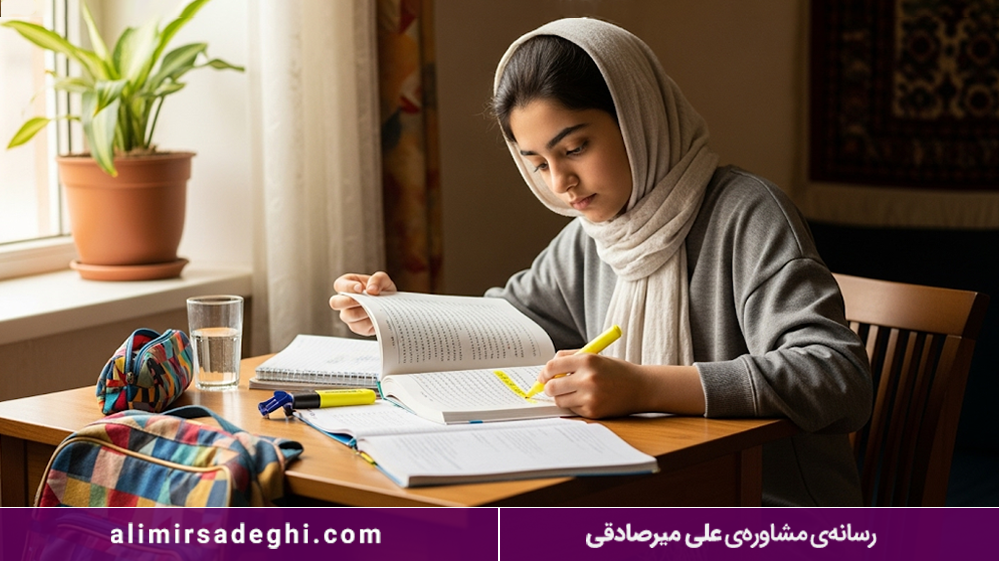 اما سؤال بسیاری از دانش‌آموزان این است که چگونه تمرکز کنیم روی درس؟ پاسخ این پرسش در ایجاد محیطی مناسب و عادات مطالعه صحیح نهفته است. یکی از راه‌های افزایش تمرکز هنگام درس خواندن، فراهم کردن یک فضای آرام، مرتب و به‌دور از هرگونه مزاحمت است. استفاده از روش‌های مفیدی مانند تکنیک پومودورو (مطالعه در بازه‌های زمانی ۲۵ دقیقه‌ای با استراحت کوتاه) یا تقسیم‌بندی مطالب به بخش‌های کوچک، می‌تواند ذهن را متمرکز نگه دارد و خستگی را کاهش دهد